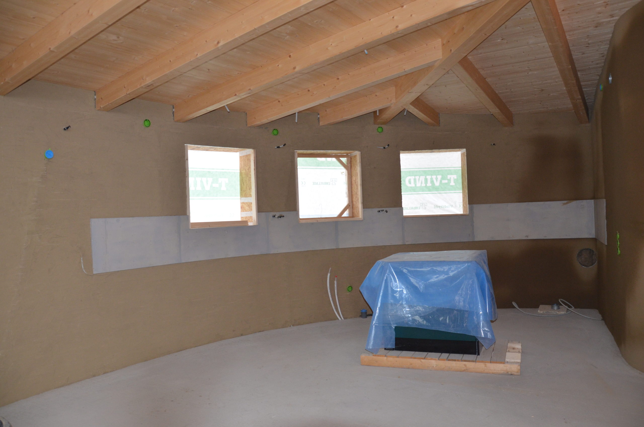 Vilket u-värde har väggarna och taket? Med 36 cm tjocka halmbalar i vägg och tak uppnås ett u-värde på 0,13 W/m2K.