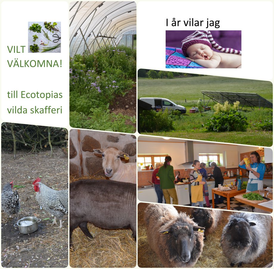 I år står de vilda ätbara växterna i fokus på Ecotopia. ”Ät ditt ogräs” heter den nya kursen där man lär dig att laga mat med vilda plantor. Hela växthustunneln står de vilda växterna till förfogande i år. Där är man vilt välkommen! Så nu skördas löpande sedan tidig vår svinmålla, våtarv, nässlor, plister, ängssyra, kirskål, tusensköna, maskros etc. Vilka fantastiska, välsmakande och framförallt näringsrika vilda växter naturen skänker ossJ Istället får det stora grönsakslandet ta en tupplur och vila i år… det har som vi säger lagts i träda.